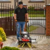 Wynajem odchwaszczarki spalinowej CEDRUS SC02 - SzczecinOpis produktu:Odchwaszczarka spalinowa Cedrus SC02 to maszyna przeznaczona do czyszczenia dużych powierzchni. Świetnie sprawdzi się do czyszczenia kostki brukowej oraz granitowej, chodników z płyt betonowych i innych powierzchni zarośniętych trawą czy mchem. 9 szczotek i duża szerokość robocza pozwala na efektywne czyszczenie bardzo dużych powierzchni.Szczotki to połączenie prętów metalowych oraz z tworzywa sztucznego, co zapewnia bardzo wysoką jakość pracy. Duże, łożyskowane koła ułatwią manewrowanie odchwaszczarką. Osłona po lewej stronie szczotek ma za zadanie wyłapać zanieczyszczenia wylatujące spod urządzenia roboczego.Odchwaszczarka SC02 jest bardzo łatwa i intuicyjna w obsłudze. Do uruchomienia silnika służy rozrusznik ręczny, aby włączyć obroty szczotki należy wcisnąć dźwignię na uchwycie oraz zwiększyć obroty silnika.Wysokość robocza, czyli odległość szczotki od czyszczonej powierzchni, regulowana jest przez operatora poprzez naciśniecie lub opuszczenie uchwytu oraz dodatkowo całą głowicę można regulować w pionie poprzez popuszczenie śrub blokujących na wale. Pozwala to na efektywne używanie odchwaszczarki w tracie zużywania się szczotek.Dane techniczne:Uchwyt składany Urządzenie robocze 9 szczotek - stal i tworzywo Prędkość obrotowa szczotki 500 obr./minNapęd szczotki pasek Szerokość robocza 700 mmPojemność silnika 166 cm³Producent silnika Loncin Model silnika LC1P65FE-2 Rozmiar kół (przód/tył) 7" Dodatkowe zalety dźwignia gazu Łożyska kół Tak Uchwyt sterujący dźwignia załączania szczotki z zabezpieczeniem Układ napędowy bez napędu Ciężar 41 kg